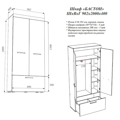Шкаф Бастон (Эра) продается в интернет-магазине mebelin-ehlektrostal.ru по цене 12 434 руб. Есть доставка по Электростали и Московской области. Возможность подъема на этаж и сборки уточняйте у менеджера по телефону 8(800)505-27-11.